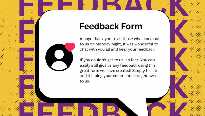 A huge thank you to all those who came out to us on Monday night, it was wonderful to chat with you all and hear your feedback! If you couldn't get to us, no fear! You can easily still give us any feedback using this great form we have created. Simply fill it in, and it'll ping your comments straight over to us. (Please note, we can't see any email addresses from this, so if you want any replies …
